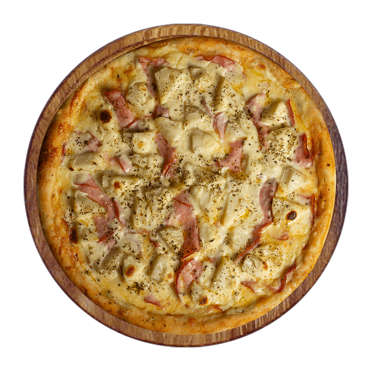 Sauce tomate, fromage, jambon, champignons, olives noires.