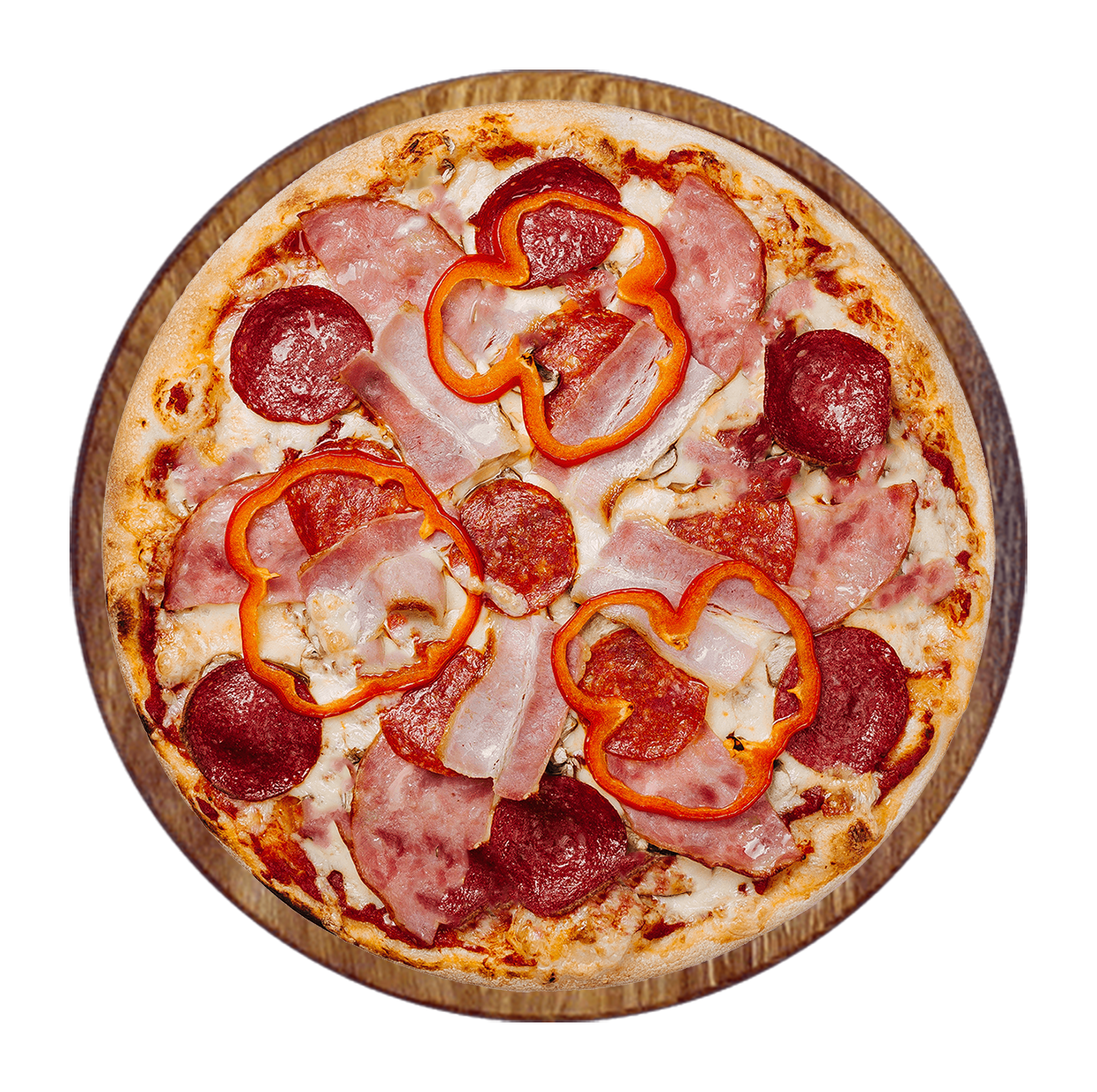 Sauce tomate, jambon, champignons, poivrons, olives.